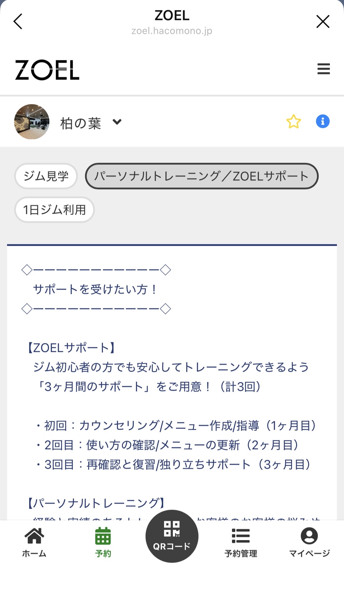 2.「パーソナルトレーニング」のカテゴリを選択