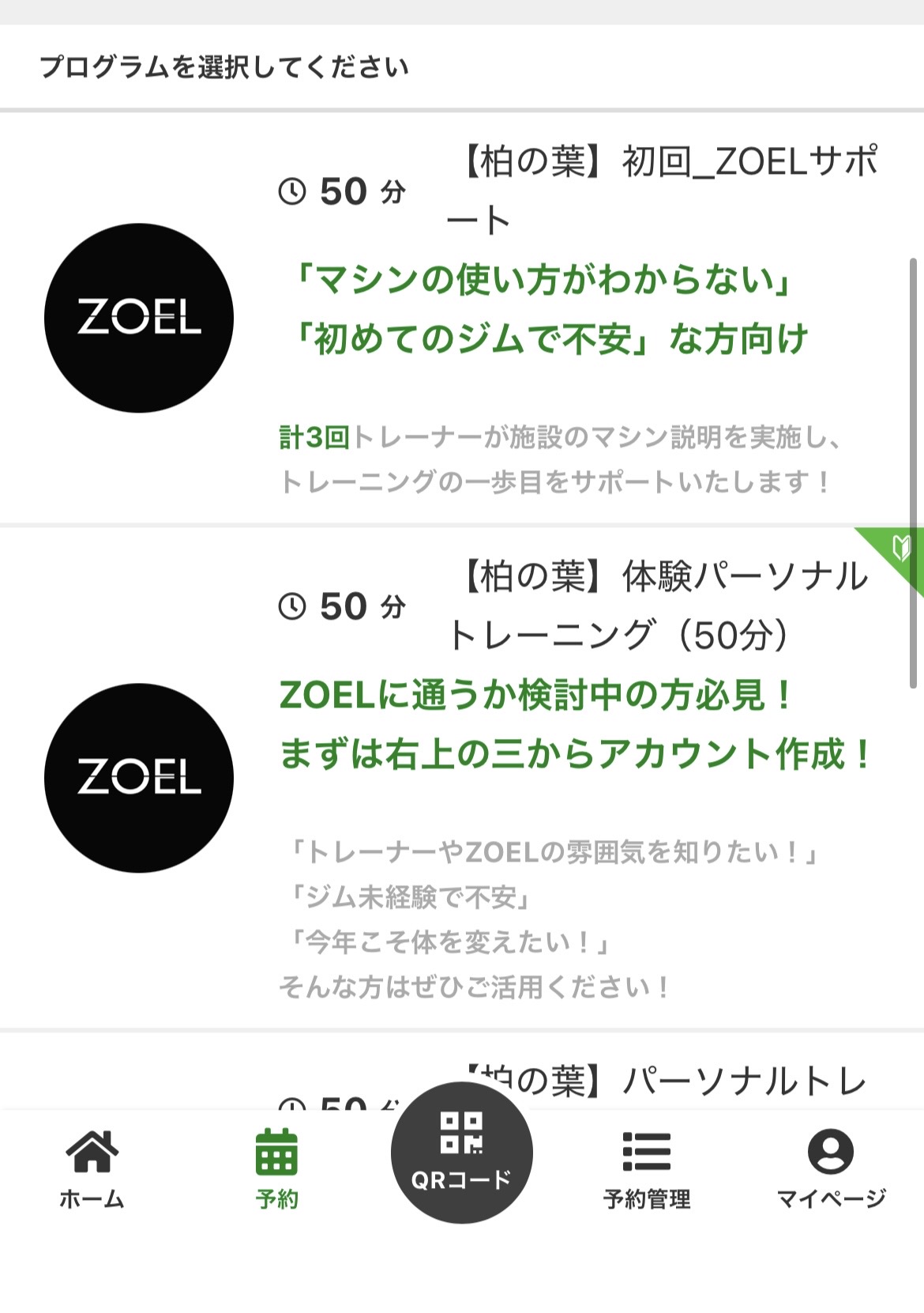 3.「体験パーソナルトレーニング」を選択